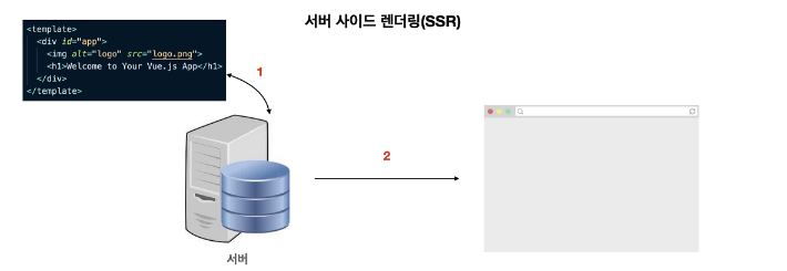 🔖브라우저가 서버에 페이지를 요청 시 서버가 이를 HTML로 구성해 전송하고, 브라우저가 이를 렌더링하는 방식이다.