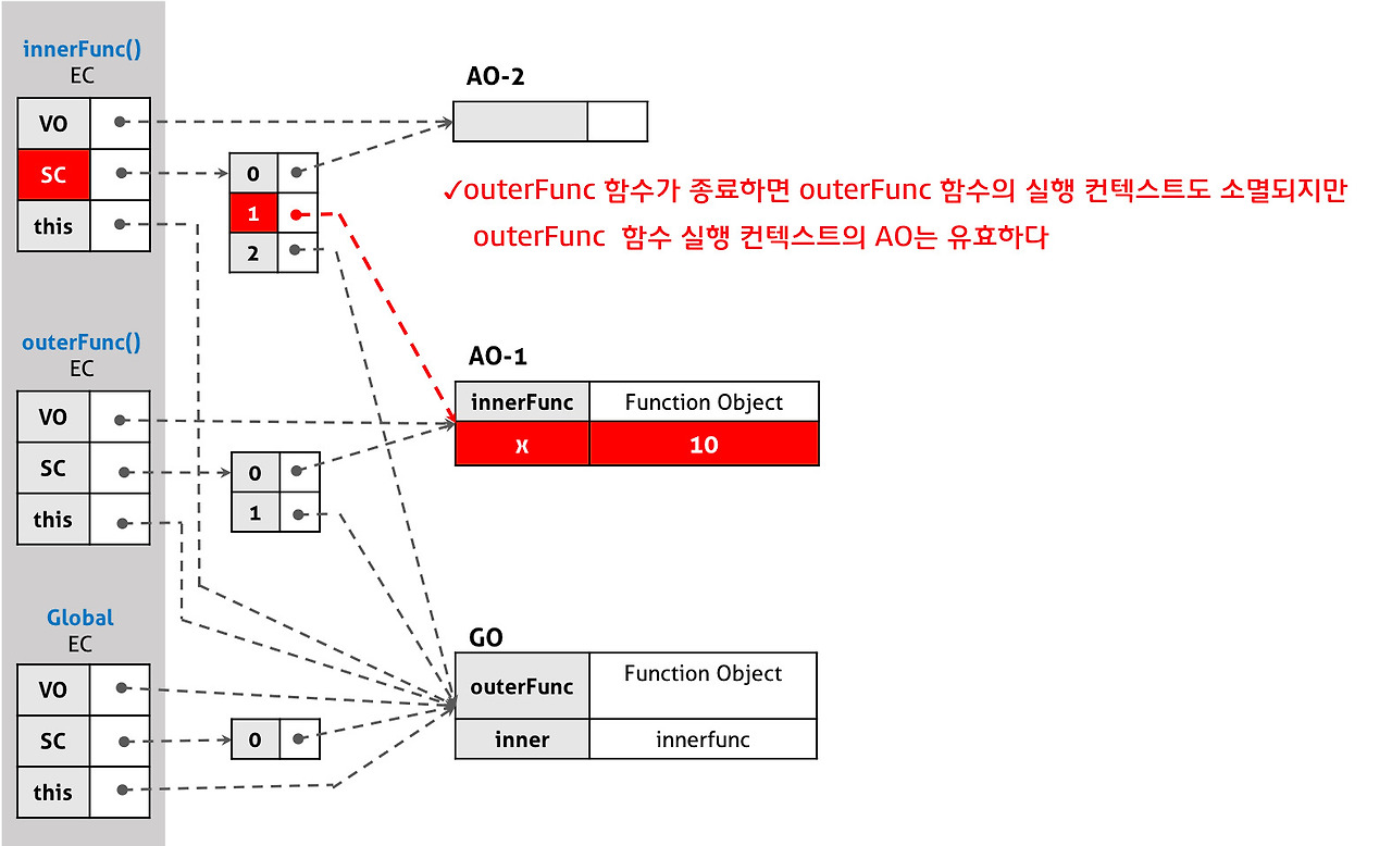 // 그리고 함수 outerFunc의 실행 컨텍스트는 소멸한다.